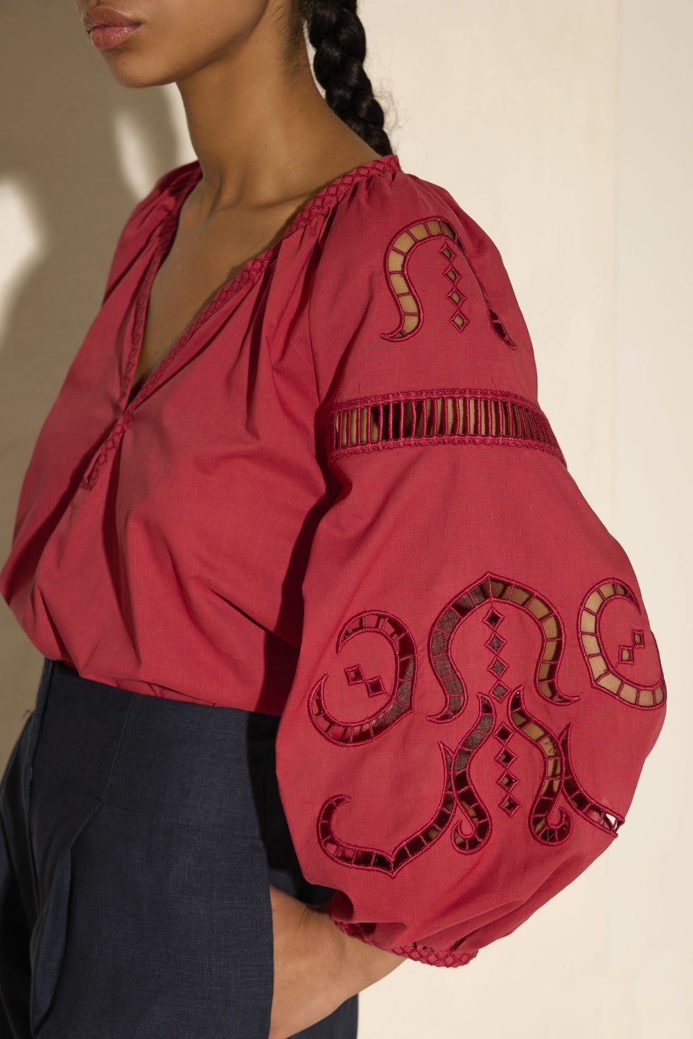 IPHIGENIA CUT EMBROIDERED BLOUSE COTTON 100% COLOR: RASPBERRY SIZES: XS S M L XL