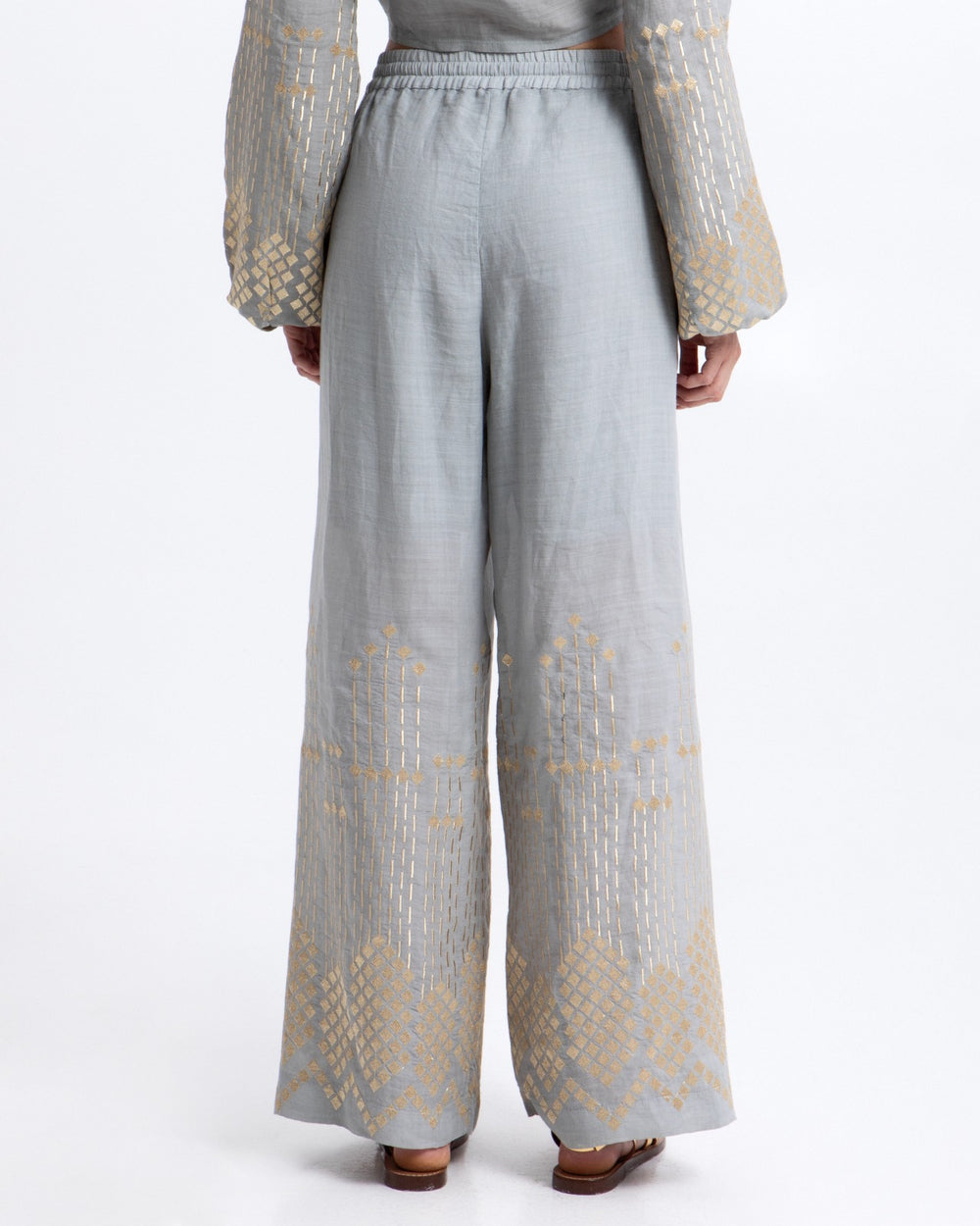 Calça Pants Grape Loose Drawstring 100% Ramie Pl Embt. Thread