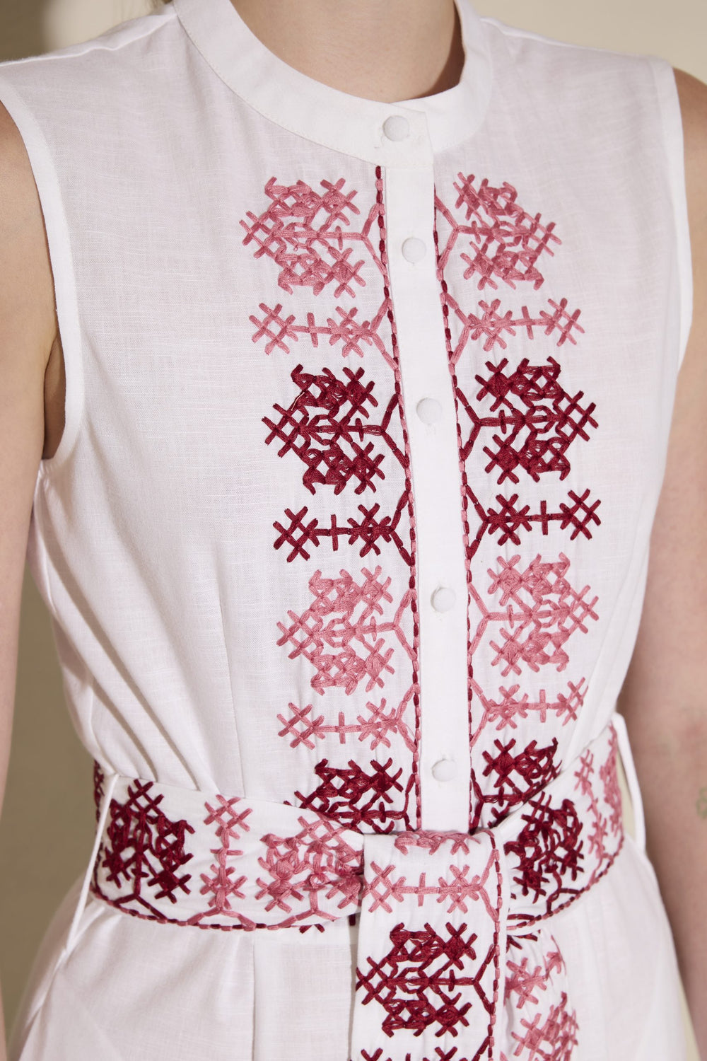 ASTYPALAIA EMBROIDERED LONG SHIRT DRESS COTTON 100% COLOR: WHITE - RASPBERRY SIZES: XS S M L XL