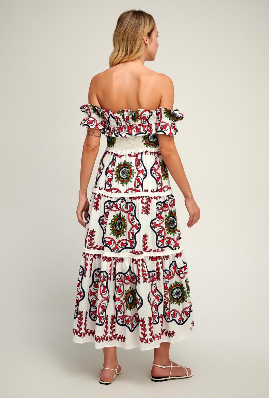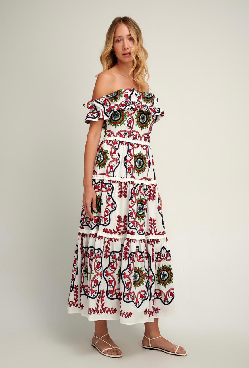 Vestido Canoa Mandalas em algodão bordado.