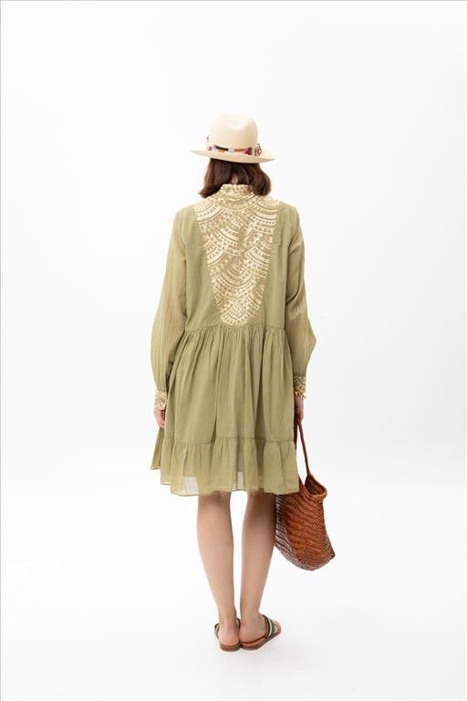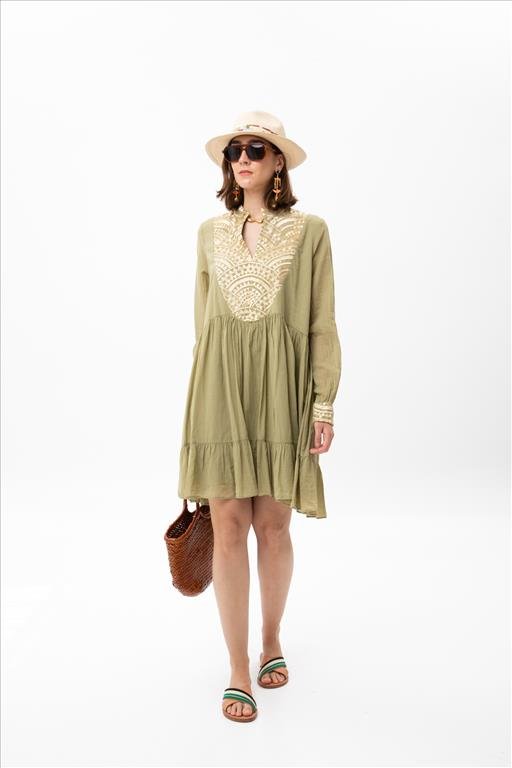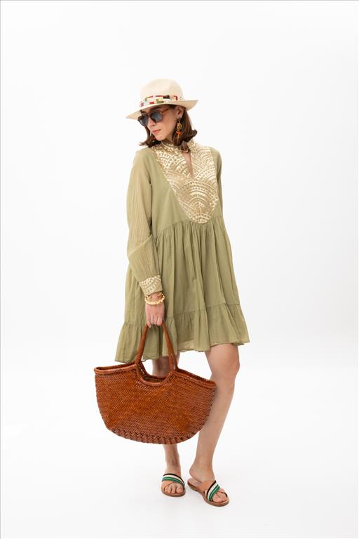 Composição: 100% Algodão Bordado: 100% Poliéster Cor: Chá com bordado dourado Fabricado na Grécia