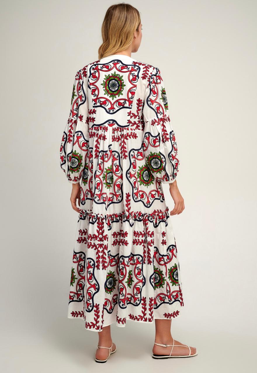 Vestido Maxi Dress Mandalas em algodão bordado